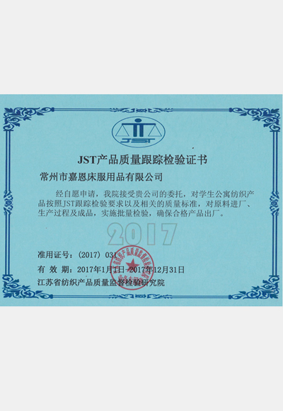 • JST產品質量跟蹤檢驗證書